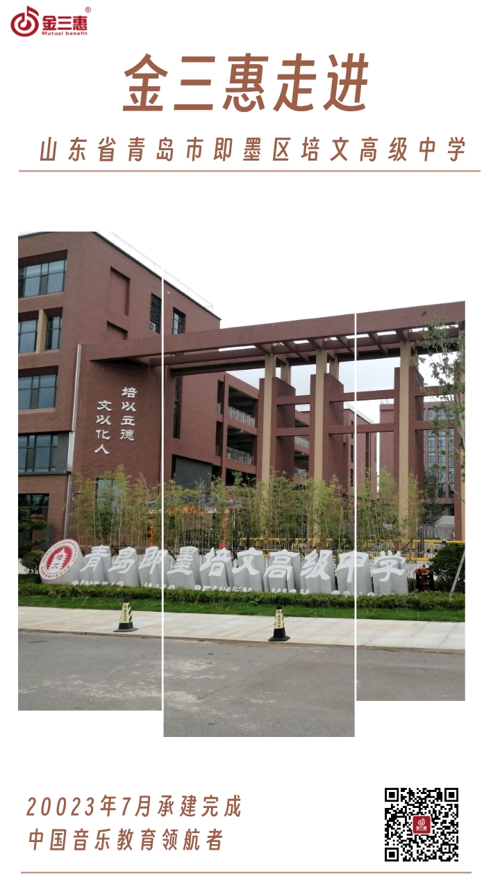 2023年7月,金三惠數(shù)字音樂教室走進(jìn)山東省青島市即墨區(qū)培文高級(jí)中學(xué),為學(xué)生提供了24+1的電鋼琴教室,配備了金三惠電鋼琴教學(xué)系統(tǒng)、電鋼琴、數(shù)字音樂教學(xué)儀等教學(xué)教具等。