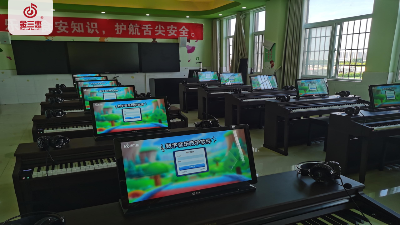 2023年8月,金三惠數字音樂教室為河南省鄭州市滎陽市豫龍鎮第一小學提供、安裝、培訓的12+1智慧創客音樂教室正式開始使用!配備了金三惠教學系統、電鋼琴、數字音樂教學儀等教學教具。
