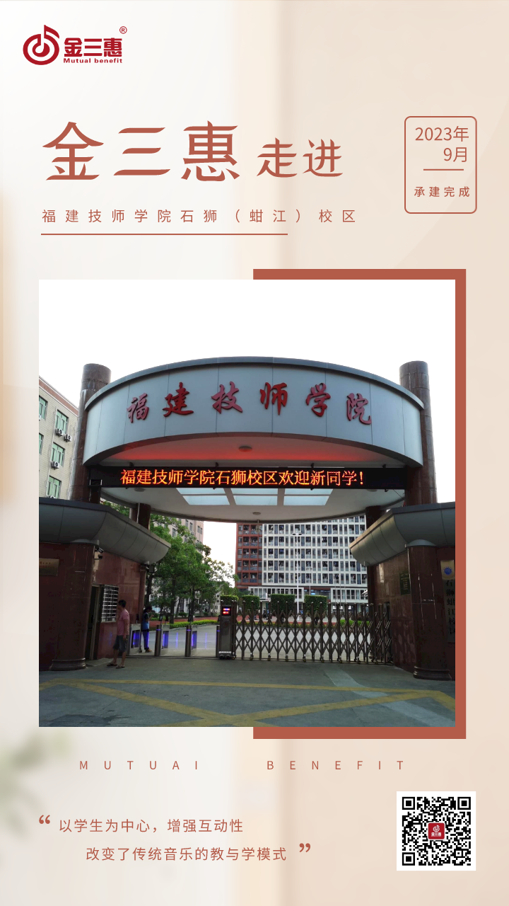 2023年9月,金三惠數字音樂教室走進福建技師學院石獅(蚶江)校區,為學生提供了40+1的電鋼琴教室,配備了金三惠電鋼琴教學系統、電鋼琴、數字音樂教學儀等教學教具等。電鋼琴室-金三惠 (jinsanhui.com)