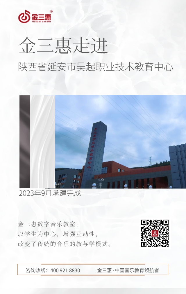 2023年9月,金三惠數字音樂教室為陜西省延安市吳起職業技術教育中心提供、安裝、培訓的25+1智慧創客音樂教室正式開始使用!配備了金三惠教學系統、電鋼琴、數字音樂教學儀等教學教具。創客教室-金三惠 (jinsanhui.com)