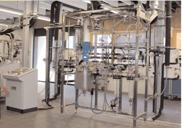 通用規(guī)范 10L,不銹鋼反應器,帶絕熱罩,不銹鋼覆蓋,帶有pH探針,加熱和冷卻區(qū)域。 變速攪拌器。 玻璃進料容器,3L,帶有控制閥。 玻璃蒸餾塔,ND50,不銹鋼多針織填料。 具有PTFE氣動閥的回流分流器。 玻璃外殼和不銹鋼盤管冷凝器。 共沸潷析器。相位選擇歧管。 刻度玻璃接收器,2升,帶有控制閥,液位檢測器。 刻度玻璃接收器,2升,帶有設置閥門,排氣和排水閥。 真空回路,帶真空聚集槽,控制閥,真空泵。 帶有控制閥的冷水回路,用于反應冷卻。 蒸汽加熱回路,帶有控制閥。 儀器儀表 溫度探針Pt 100Ω。 流量計40-400升/小時。 真空壓力計:-1/0巴。 壓力計。 pH值傳感器。 配件 蒸汽發(fā)生器9kW,400伏,三相。 多用途自動反應釜 控制面板監(jiān)控數(shù)據(jù)采集該裝置包括一個不銹鋼反應釜,絕熱罩有加熱和冷卻區(qū)域。 這種設計允許加熱、冷卻和保持設定溫度。 固體試劑通過蓋子上的可到達的填充端口加載。一個進料漏斗(真空下填充)用于在反應釜內引入液體試劑?刂崎y允許以說明為基礎精確加 入批量試劑或控制pH。 在蒸餾過程中,回流頭用于將回流比從零變?yōu)榭偦亓鳌_@個比率在控制面板(HMI視圖)設置。 蒸餾物被收集在2個接收漏斗中,用于自動填充:在第一個接收漏斗上的液位檢測允許檢測容量是否滿并且切換到第二個接收漏斗。 第一接收器的管理是完全自動化的(填充、真空、排水等)。第二個 收器是手動的,用作緩沖器。 |
