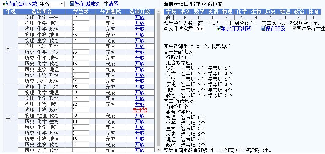 99走班排課系統是一套基于interner環境開發的Web應用系統。學校管理員可使用PC或移動設備進行業務操作。 系統使用我公司研發的算法,按資源效率最大原則,完成分班和排課計算。 系統可滿足新高考3+3,3+1+2,小走班幾種教學模式的選課排課需求。排課結果可形成班級、教師、學生、教室的獨立課表,并通過Web直接發布。 支持學考開課和選考開課,為學校在學業水平考試前就開始進行走班教學提供技術支持。 系統提供了分班預測功能,可在學生正式選課前對學校資源進行分析。使老師在做選課宣傳動員時心中有數。 可實現學生走動最小化分配,減少學校管理難度。 支持男女均衡分班,分層分班教學。 本系統可同時滿足普通中小學的排課需求。 四、系統基本工作流程 1、基本信息維護:維護學校中的基本資源信息,包括教師信息、教學場地信息、整體課時安排等。 2、教學計劃設置:設置基本教學計劃,構建選課組合、規劃好個年級各科目的開課課時量。設置好走班年級可用的任課教師。 3、分班預測:根據設置好的基礎數據,測算在學生出現不同選課組合情況下是否能完成分班,開課需要的教學場地數量。 4:開放學生選課:根據預測結果,選擇性開放選課組合供學生選課。 5、學生選課:學生在指定時間范圍內從開放的選課組合中選取自己想要學習的組合。系統支持學生Web選課,同時支持Excel導入選課數據。系統自動統計出選課統計報表。 6、選課調整:教師根據學生前期選課的結果,對學生進行指導,并根據結果對個別學生原有的選課進行調整。 7、智能分班:系統根據前期得到的數據,系統使用智能算法計算出分班,完成學生分班和教師任課設置。系統可確保得到的分班結果在無其它排課條件的情況下一定可以完成排課。 8、人工調整分班:如需要對系統自動生成的分班結果進行人工調整,可在此進行,調整內容包括學生分班調整和教師任課調整。 9、可排課測試:對人工調整后的分班,必須進行可排課測試,以保證分班結果可排課。 10、排課條件設置:根據學校實際情況,設置排課條件,如課時優先、禁排。 11、智能排課:系統根據設置好的條件,自動完成排課計算,生成課程表。 12、人工調整課表:如需對生成的課表進行人工調整,可在此進行。 13、教學場地安排:根據已排好的課表和教學場地需求,自動計算分配教學場地,保證學校教學場地資源發揮最大資源效率。 14、課表發布:完成排課工作,并通Web向老師和學生發布新的課表。 |