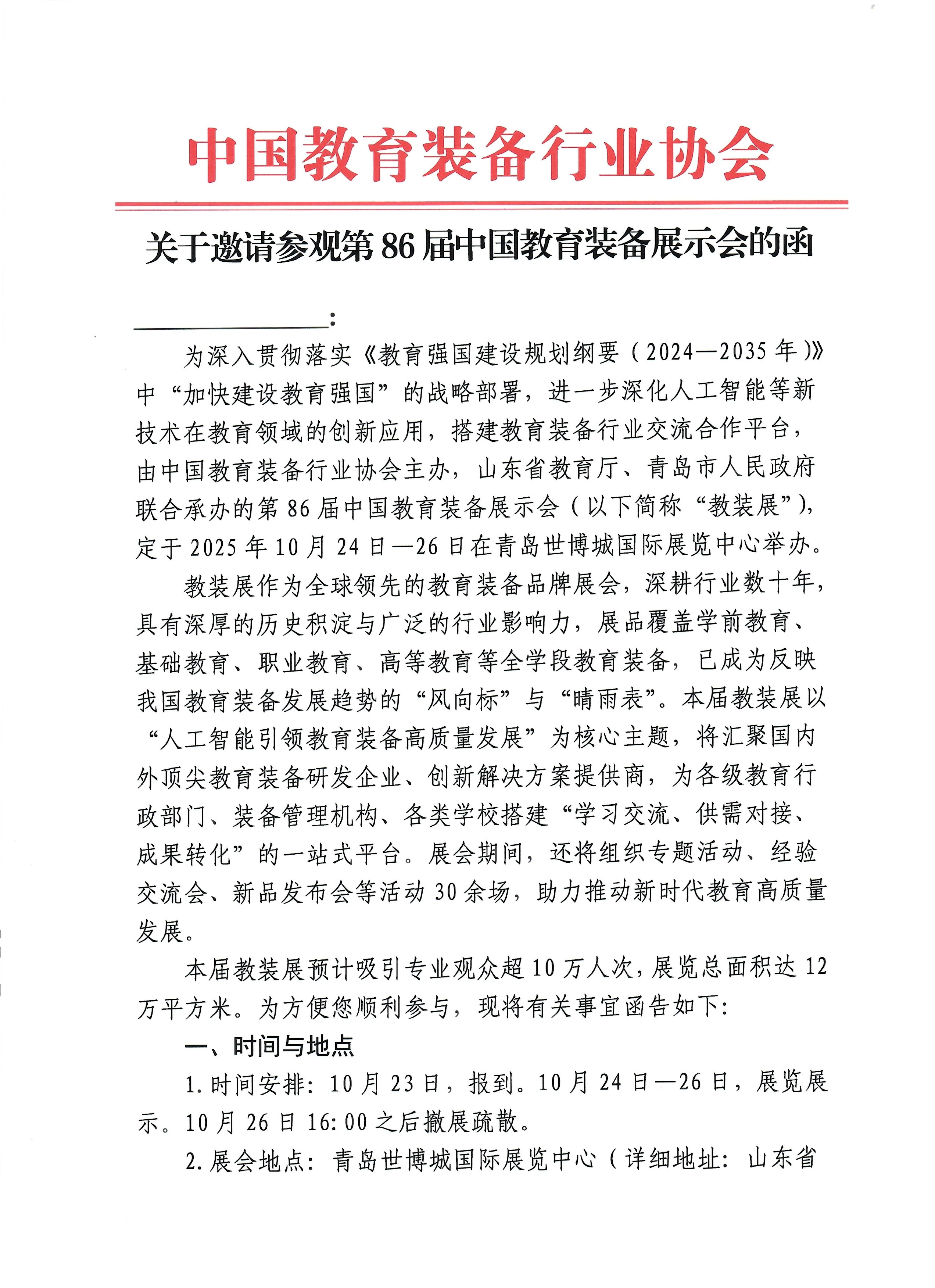 主辦單位:中國(guó)教育裝備行業(yè)協(xié)會(huì)展會(huì)時(shí)間:2025年10月24日-26日展會(huì)地點(diǎn):青島世博城國(guó)際展覽中心